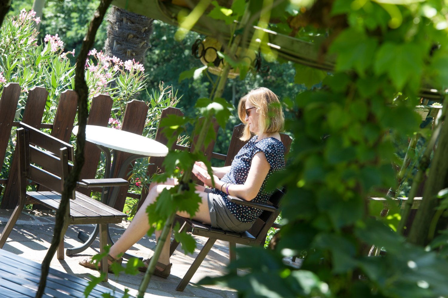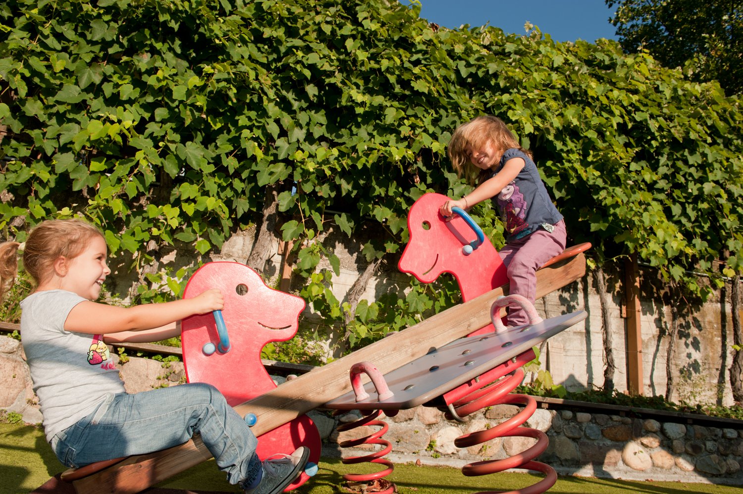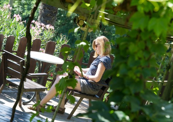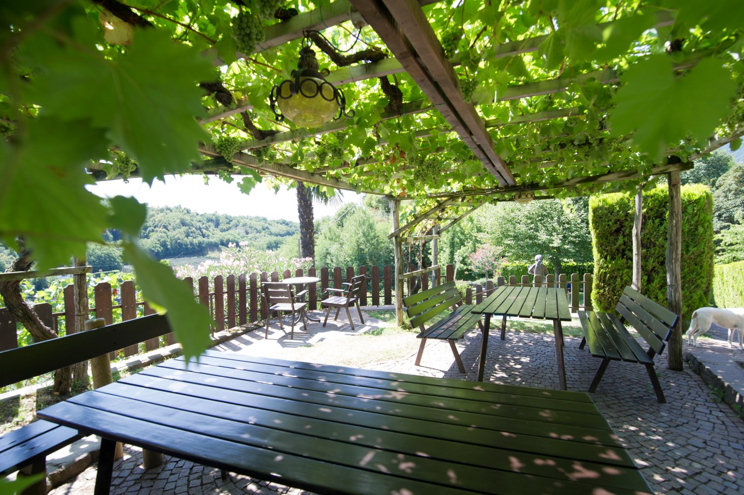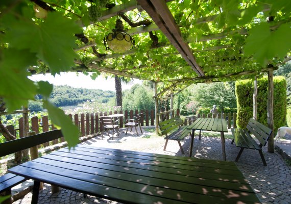 Einen aufregenden Urlaubstag können Sie abends bei einen Glas Schlosswein unter unserer Rebenlaube abrunden und den Tag Revue passieren lassen.
