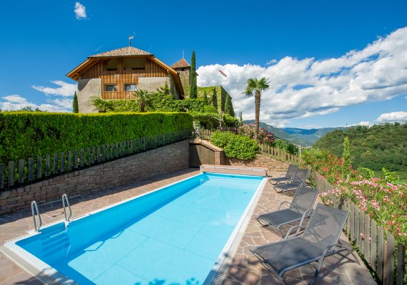 Die Lage von Schloss Warth garantiert strahlenden Sonnenschein bei einem atemberaubenden Panorama von Bozen und den Dolomiten-Urlaubsstimmung pur.